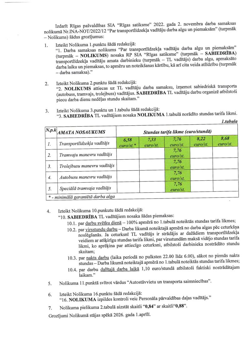 Arodbiedrība informē par Rīgas pašvaldības SIA „Rīgas satiksme” darbinieku vidus ievēlētām uzticības personām darba aizsardzībā, kuras piedalīties darba vides iekšējās uzraudzības veikšanā, tai skaitā darba vides riska novērtēšanā, darba aizsardzības pasākumu plānošanā un efektivitātes pārbaudēs, kā arī darba aprīkojuma atbilstības novērtēšanā.